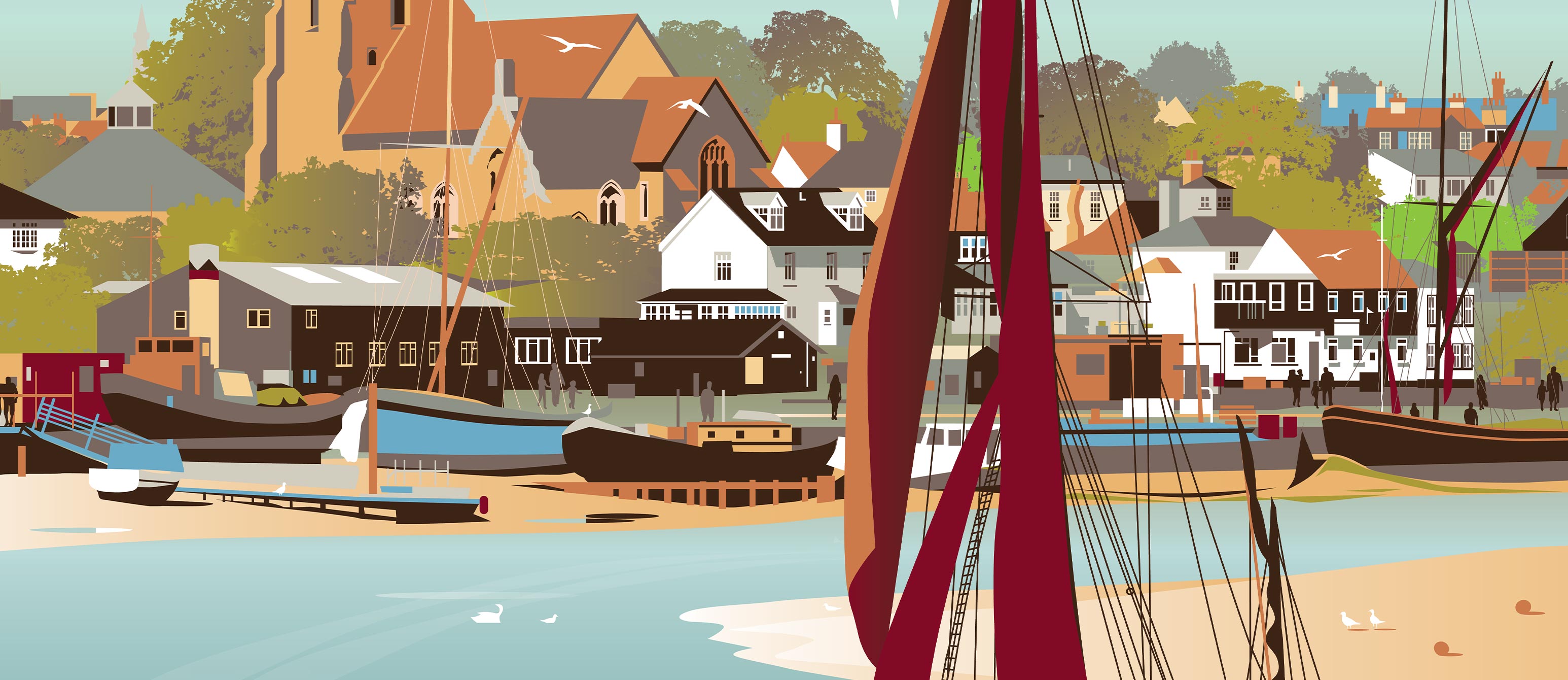 Wisdom Art Prints is a Tiptree based, family run creative studio, illustrating and producing the highest quality greeting cards and art prints. Our lead artist Rob Wisdom has been illustrating professionally for over 45 years. Our obvious love of the local Essex environment and the scenes we illustrate have been a universally popular pairing - a refreshing new celebration of all things Essex. Recently our artistic explorations have taken us to Suffolk, too. Our art is in the timeless art deco style, reminiscent of travel posters from a bygone age.