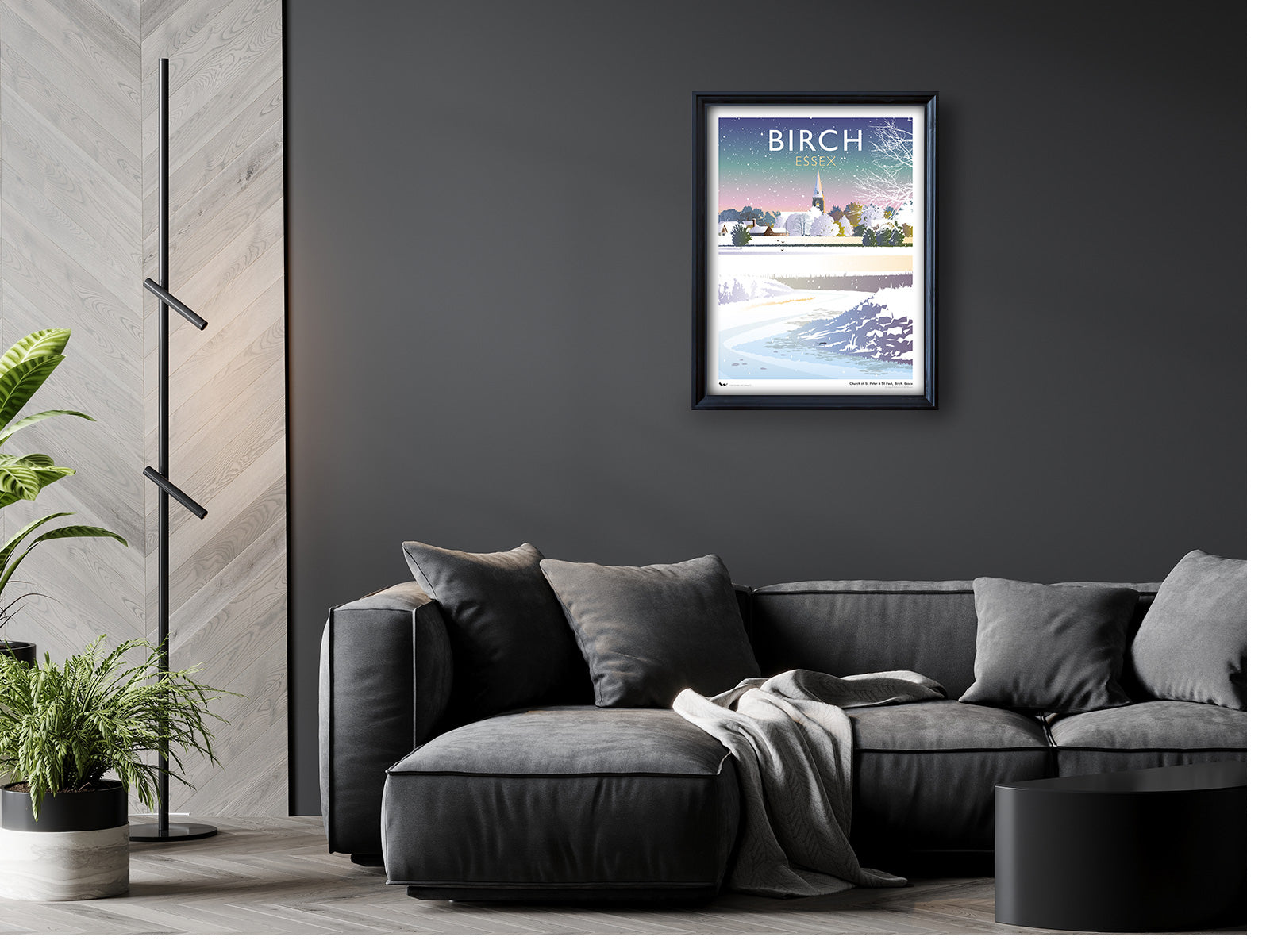 Premium Giclée illustration of the Church of St Peter and St Paul in Birch, Essex. Nestled in the Essex countryside south of Colchester, not far from Abberton Reservoir, Birch Church - as the church is most commonly known - is a major landmark in the rural landscape, with its spire rising 110 feet into the air. Designed by noted architect Samuel Sanders Teulon, Birch Church was built in 1850, and was an active Church of England church for over a century before its closure in 1990.
