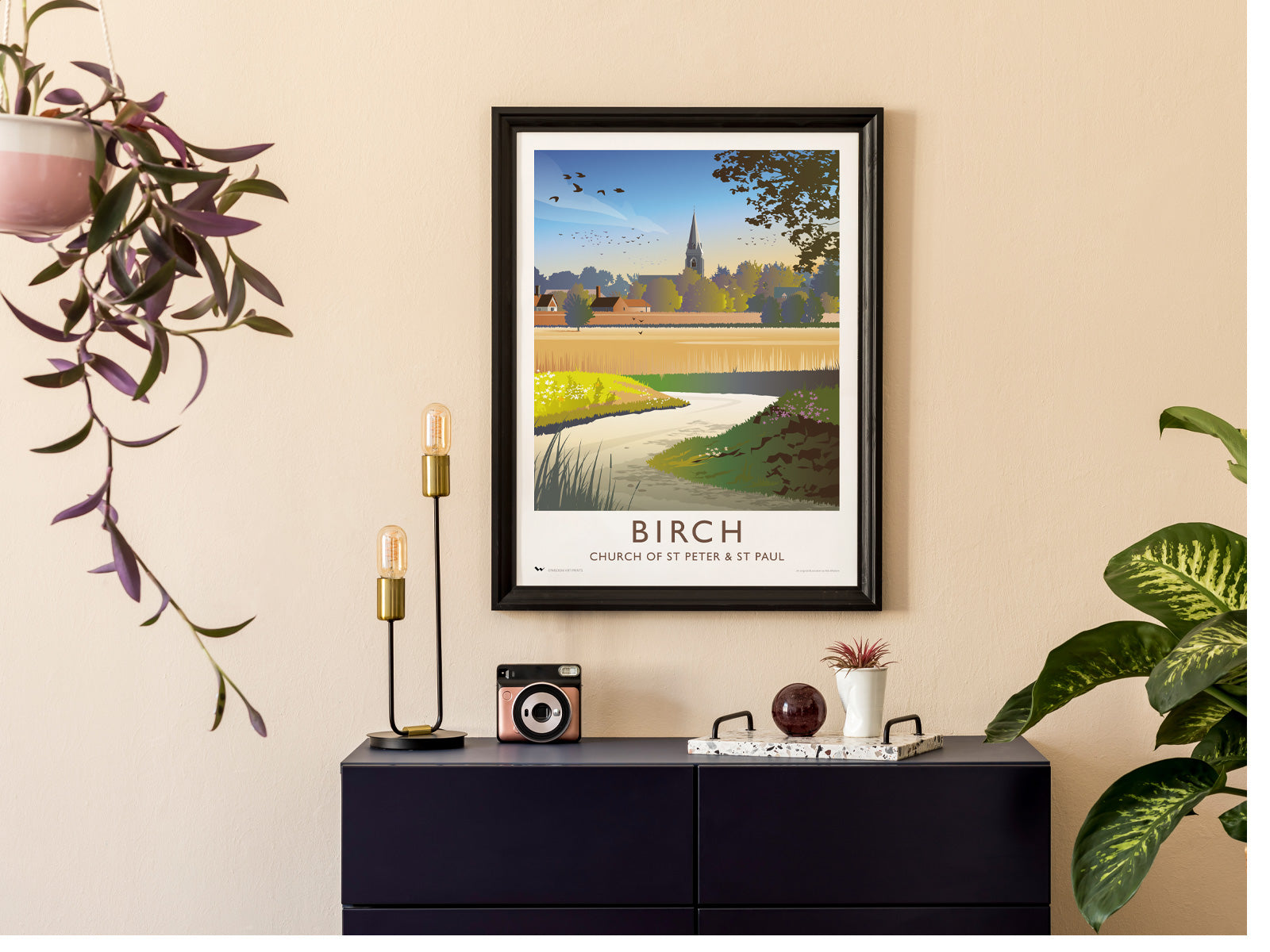 This Essex illustration by artist Rob Wisdom is a high quality Giclée travel poster on cotton-rich fine art paper. For our Giclée art print of Birch, click here.