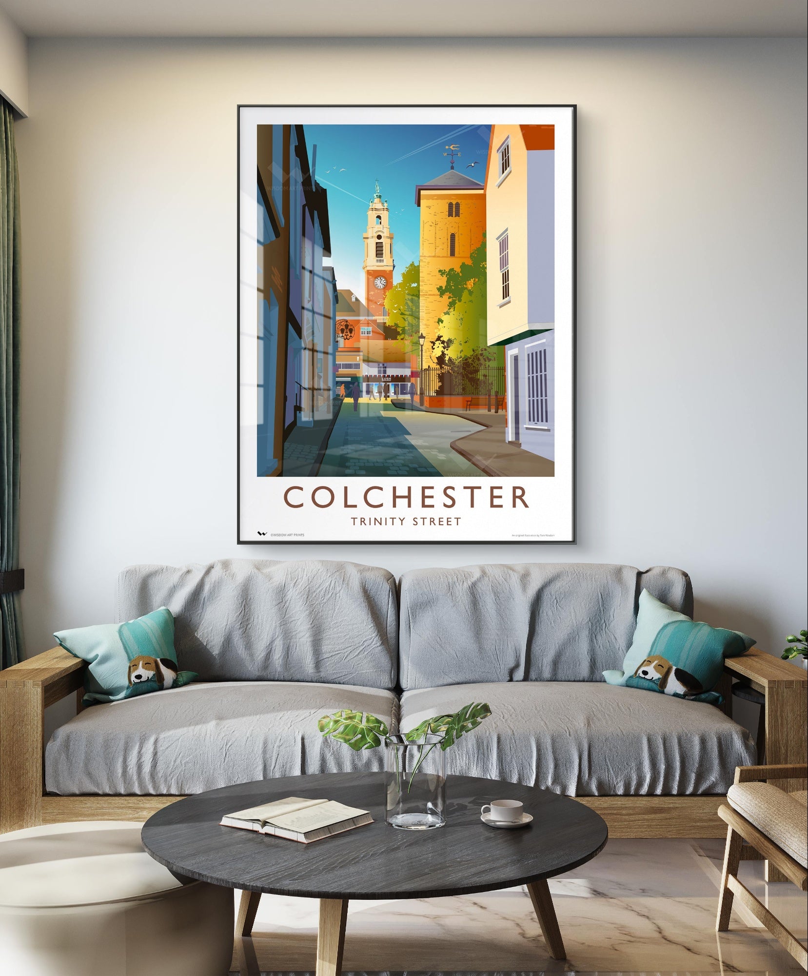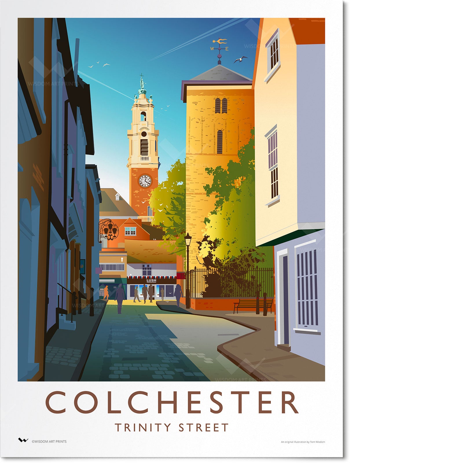 High quality travel poster of Trinity Street in Colchester, Essex.