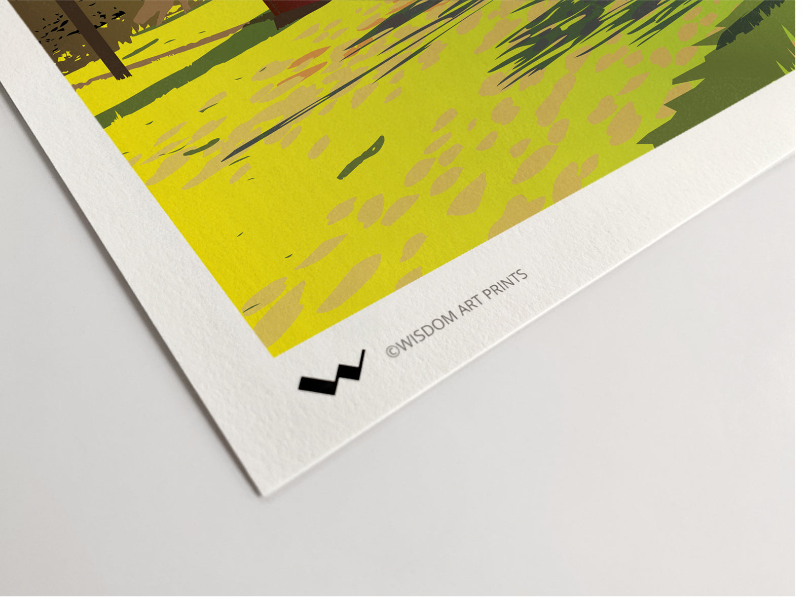 This Essex illustration by artist Rob Wisdom is a high-quality Giclée art print on cotton-rich fine art paper. It is also available as a Feering, Essex travel poster.