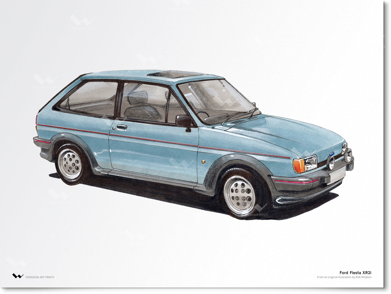 Introduced in 1976 and still being produced today, the Ford Fiesta is one of the most successful cars in American automobile manufacturer Ford's history, selling over 16 million units over the decades. The XR2i, depicted in this illustration, debuted in 1989 with an eight-valve CVH engine, and ran until 1994.