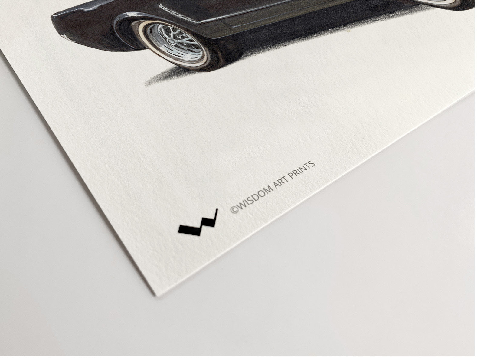 In production since 1964, the Ford Mustang is American automobile manufacturer Ford's longest-running series of cars. This illustration depicts a 1964 Ford Mustang 1/2 convertible from the very first run of production. An instant hit, the Mustang featured in iconic James Bond film Goldfinger alongside the Aston Martin DB5, and announced the new series of classic cars to the world.