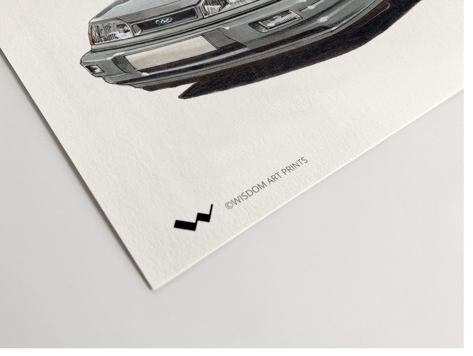 The Ford Sierra is a classic family car, built by Ford Europe from 1982 to 1993, iterated upon in 1988 with the Sierra Sapphire, a 4-door saloon variant. The name Sierra Sapphire was used in marketing only in the UK. This illustration depicts a Sierra Sapphire with an RS Cosworth engine.