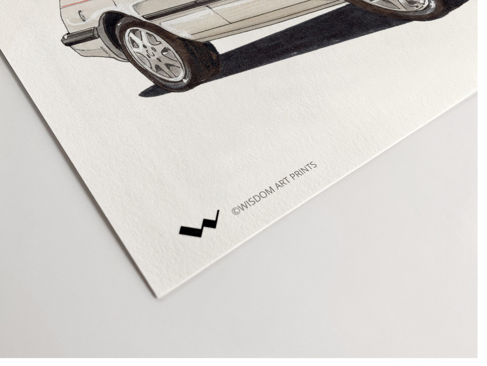 Unveiled at the Geneva Motor Show in 1985, the Ford Sier ra XR4x4 was a derivative of the performance XR4i, itself a model of the 1983-1993 Ford Sierra. The XR 4x4, as its name suggests, was a four-wheel drive model, unlike other models of Sierra which were rear-wheel drive. This illustration depicts a Sierra XR 4x4 in a timeless cream.