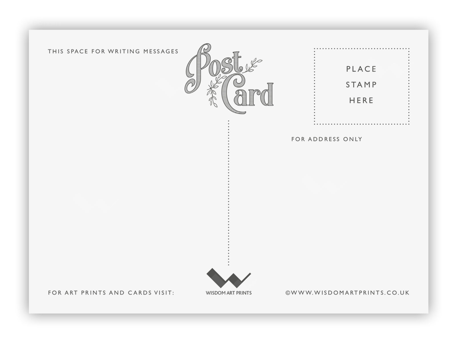 Our illustrated postcards are A6 (approximately 6" by 4") and feature an original illustration by Rob Wisdom.