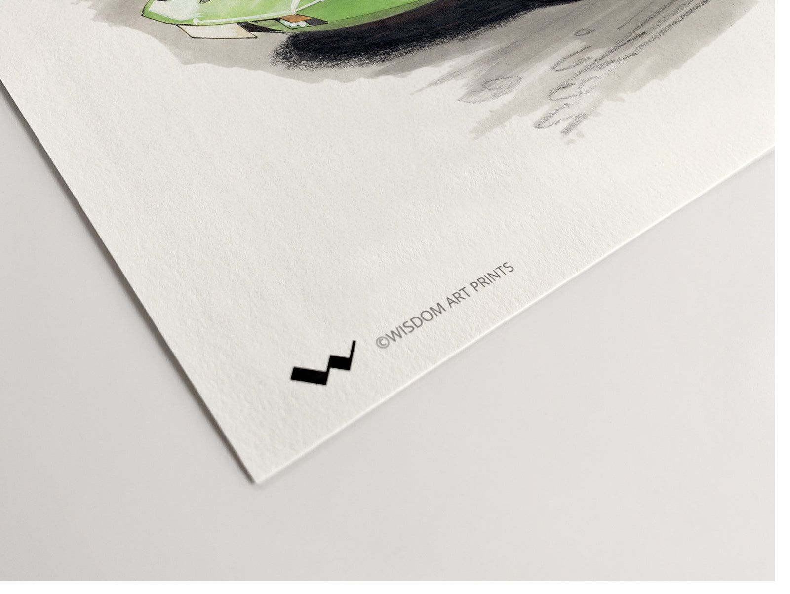 This illustration by Rob Wisdom is a high quality Giclée art print on cotton-rich fine art paper.