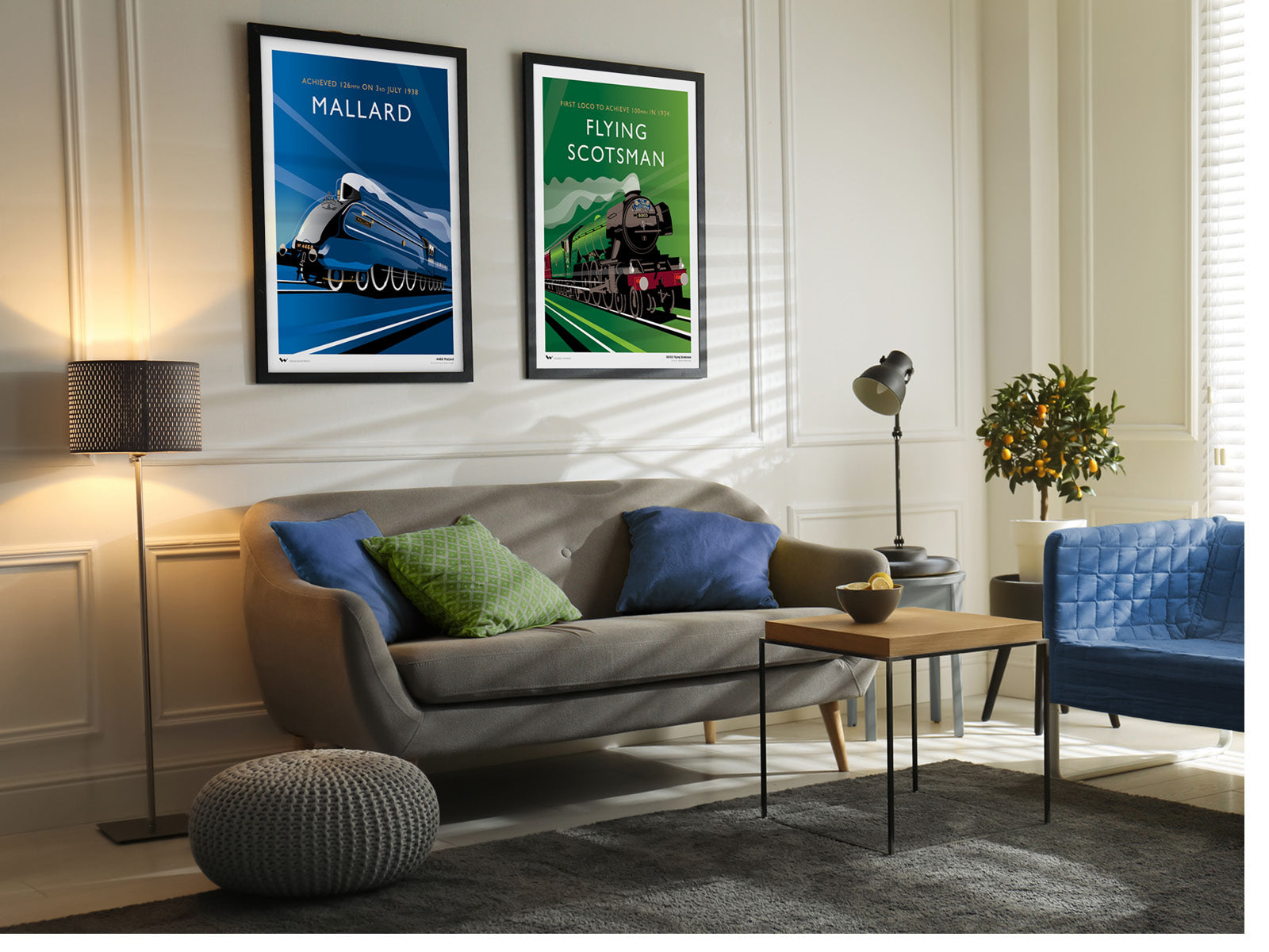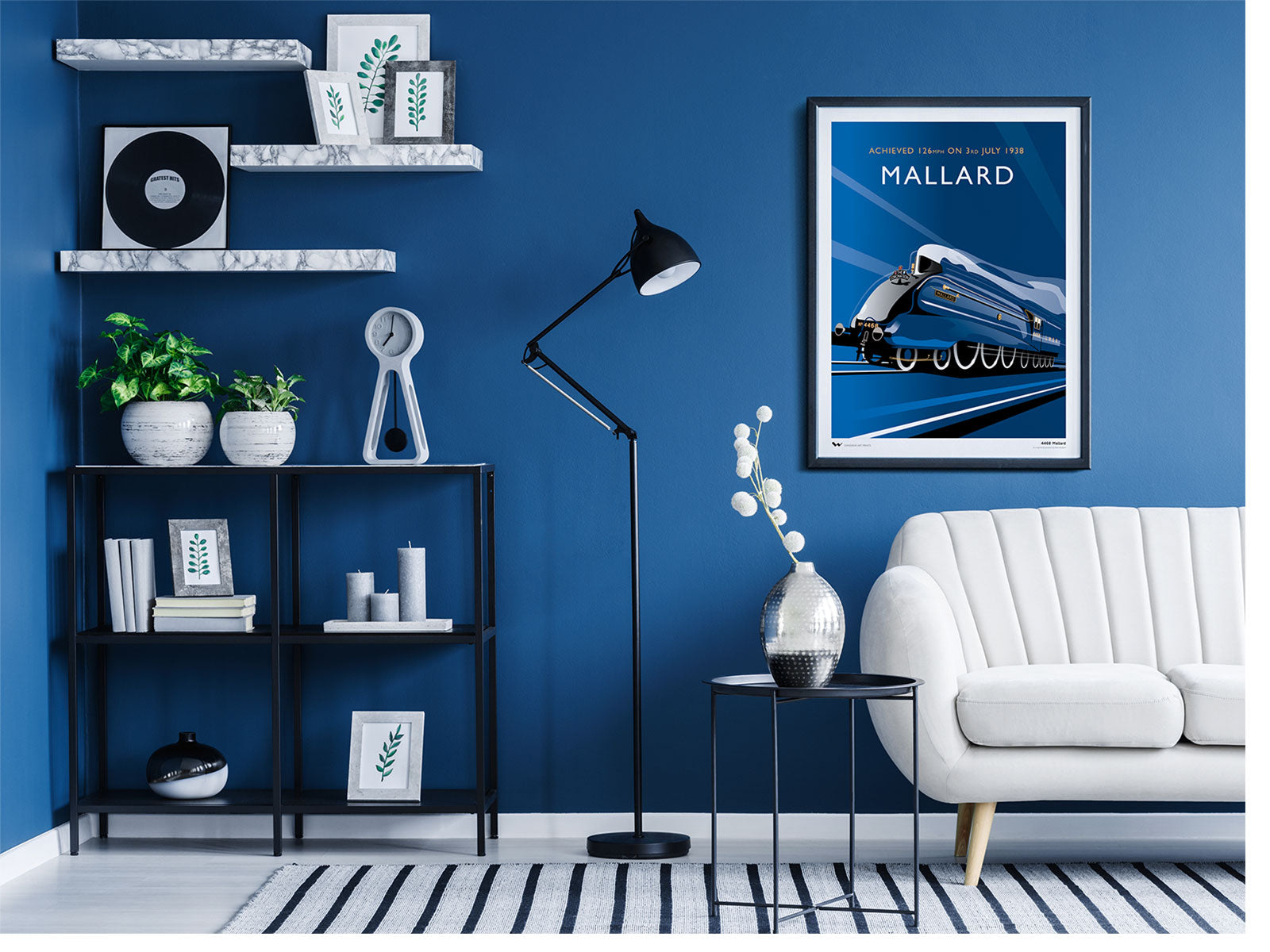 Mallard is depicted in this high quality art print against a blue background, matching her iconic 'garter blue' livery.