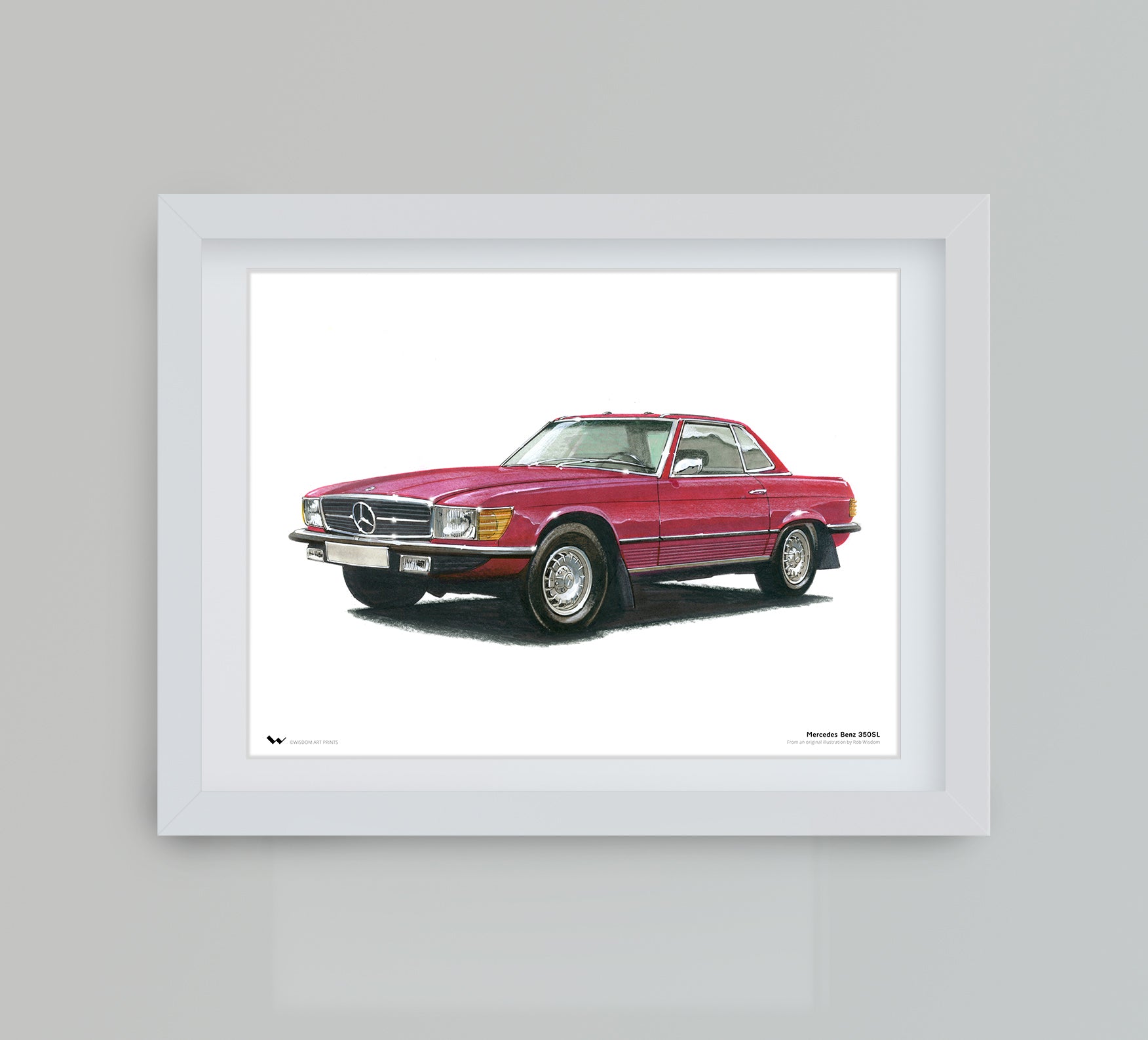 The Mercedes-Benz 350SL is a classic sports car, one model of the long-running R107 and C107 line, which was produced by Mercedes-Benz from 1971 to 1989. The 350SL, depicted in this illustration, was one of the first R107 models to hit the market, being sold from 1971 onwards.