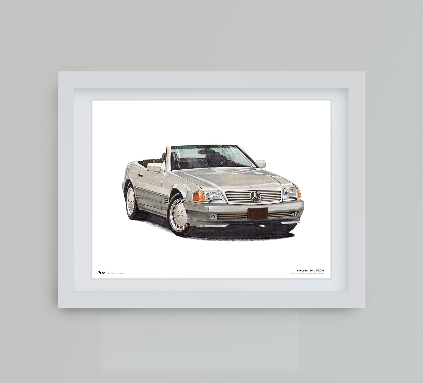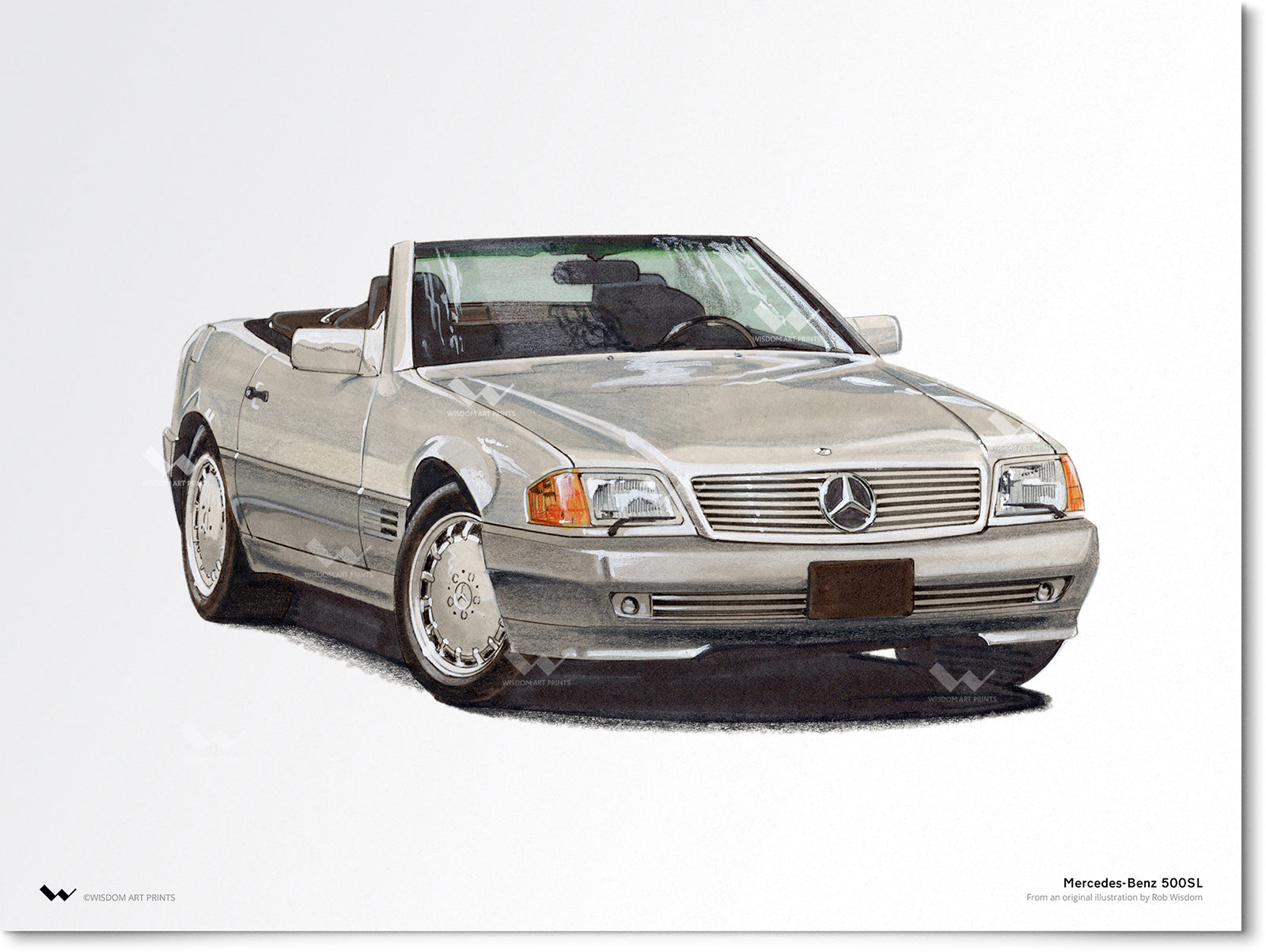 The Mercedes-Benz 500SL is a classic sports car, one model of the long-running R107 and C107 line, which was produced by Mercedes-Benz from 1971 to 1989. The 500SL, depicted in this illustration, hit the market in 1981, replacing the SLC along with the 380SEC.