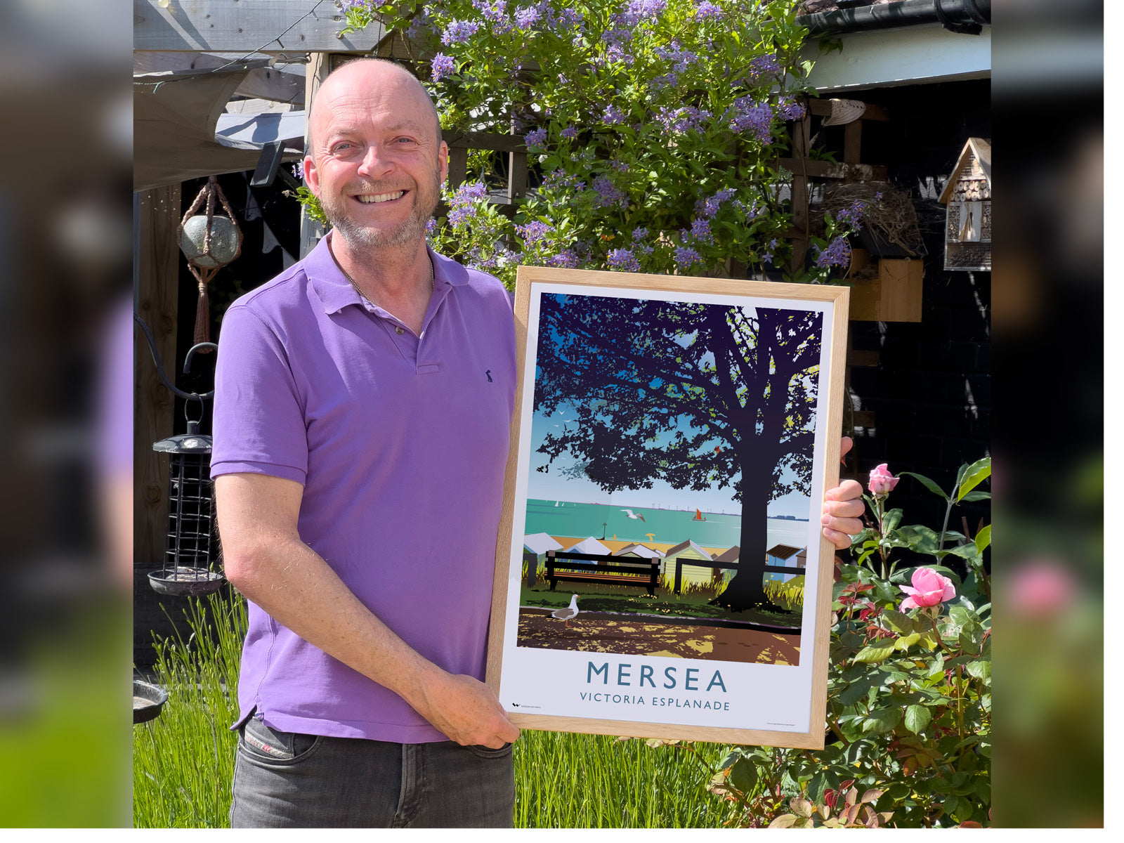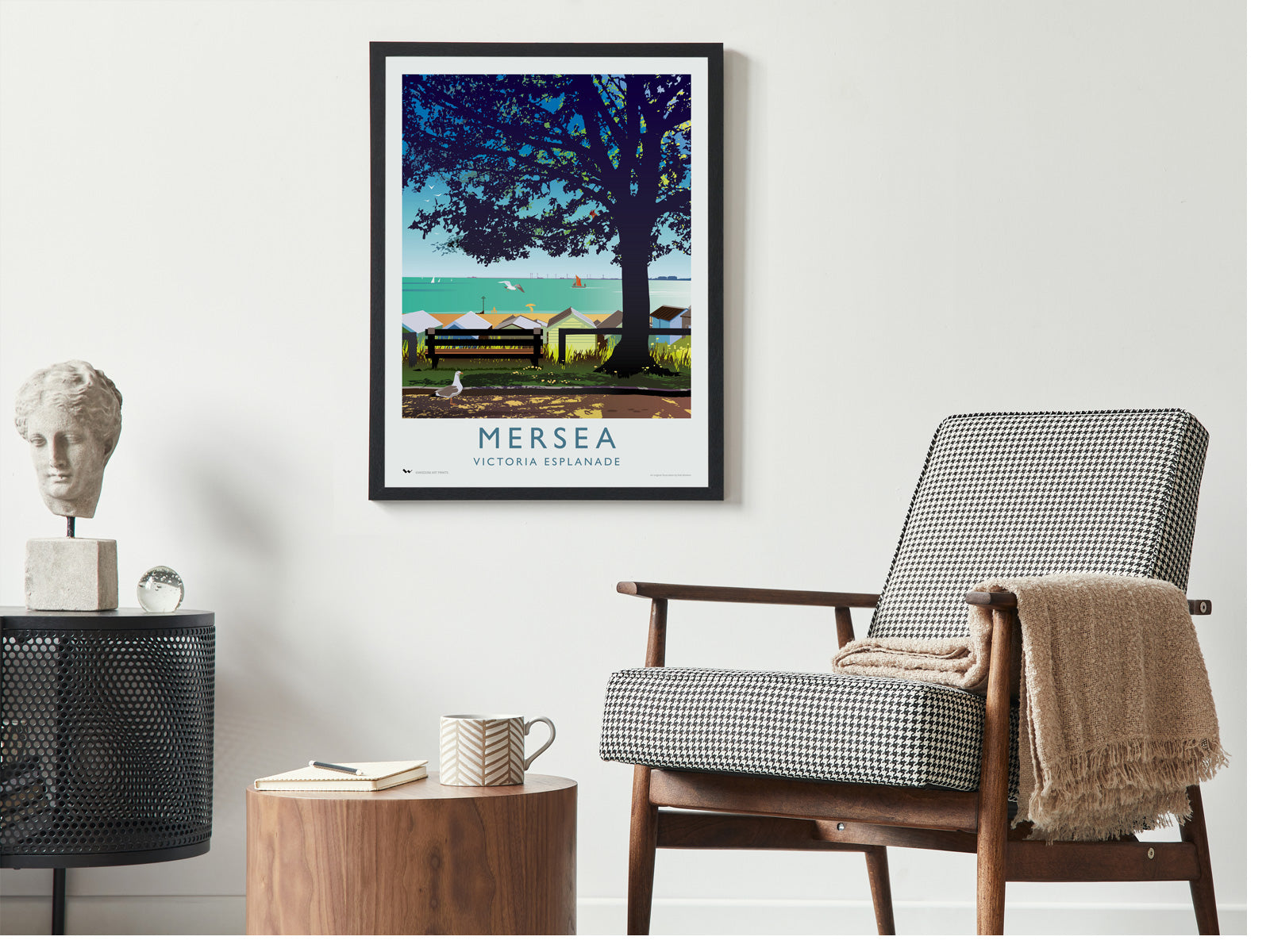 This Mersea illustration by Essex artist Rob Wisdom is a high quality Giclée travel poster on cotton-rich fine art paper. For our classic art print of Victoria Esplanade, click here.