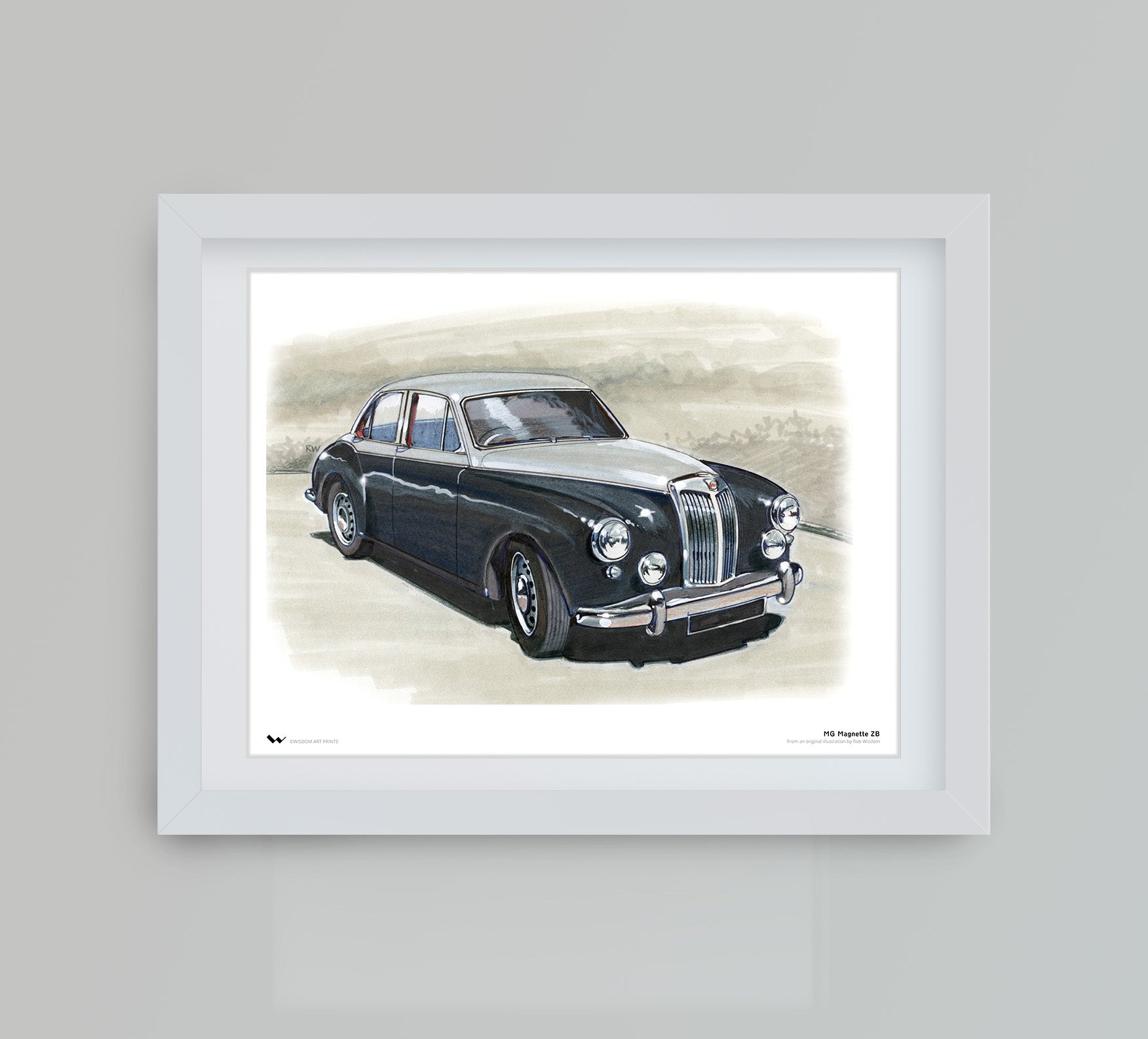 The MG Magnette is a classic family car that was produced by MG between 1953 and 1968. The Magnette ZB, depicted in this illustration, was the second series of Magnette, replacing the earlier ZB in 1956, and running until 1958.