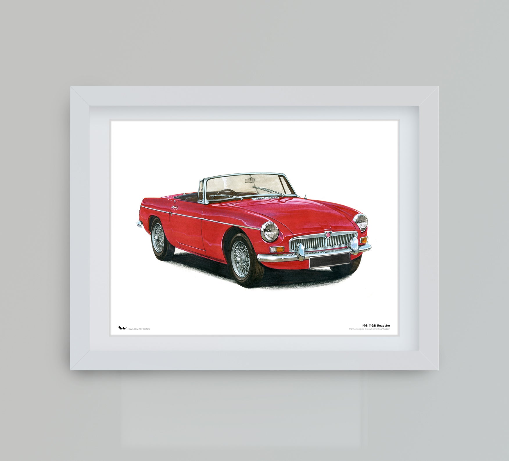 The MG MGB is a classic sports car, manufactured under the MG marque from 1963 to 1980, and again from 1992 to 1995 as the MG RV8. Succeeding the MG MGA, the MGB featured a unitary structure rather than a traditional body-on-frame structure, and was one of the first cars to feature crumple zones. This illustration depicts an MGB 2-door roadster.