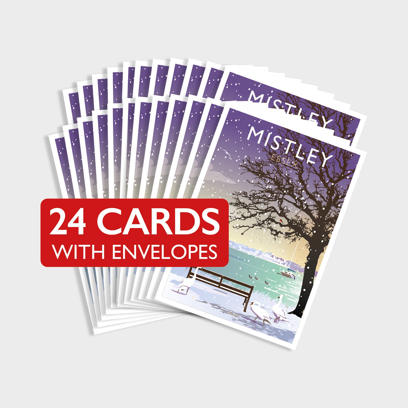 High quality Christmas card of Mistley, a village in the Tendring district of Essex. Located north of Colchester and almost continuous with neighbouring Manningtree, Mistley was known as Mistleythorn until the 18th century, when developer Robert Adam began the town's transformation.