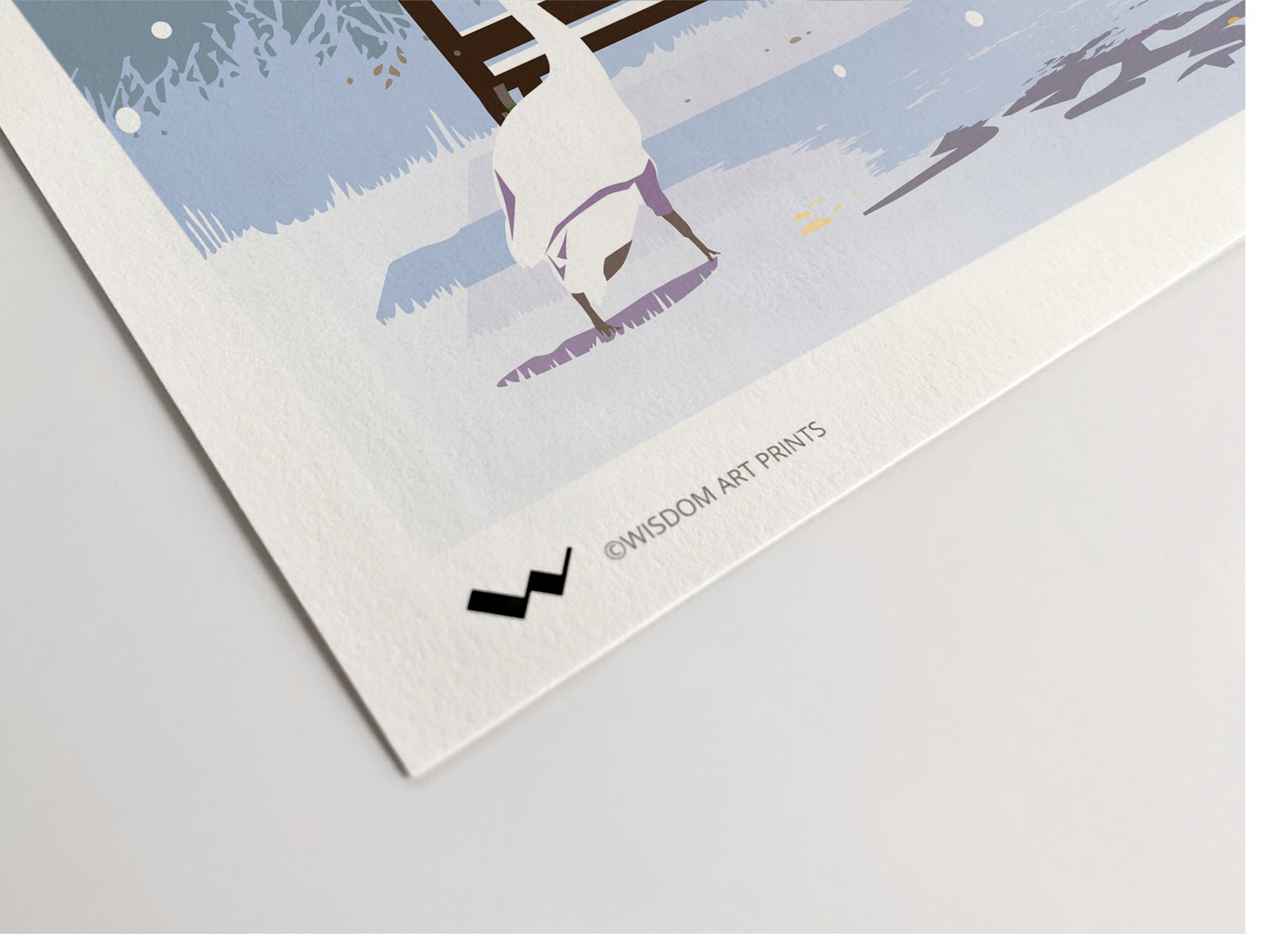 This Christmas illustration by artist Rob Wisdom is a high-quality Giclée art print on cotton-rich fine art paper. For our Giclée travel print of Mistley, click here.