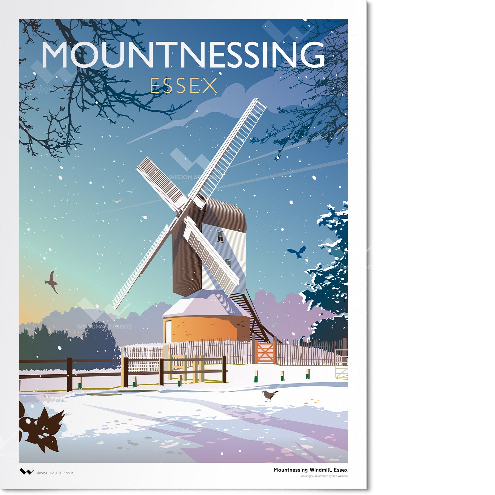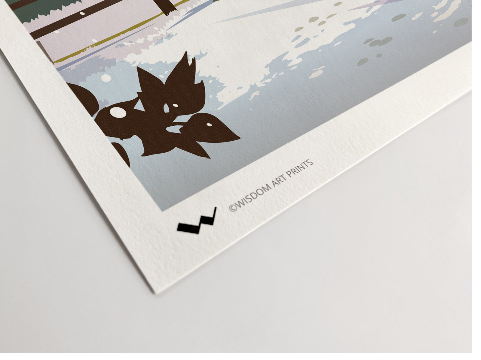 This winter illustration by artist Rob Wisdom is a high-quality Giclée art print on cotton-rich fine art paper. It is also available in travel poster style, please click here.