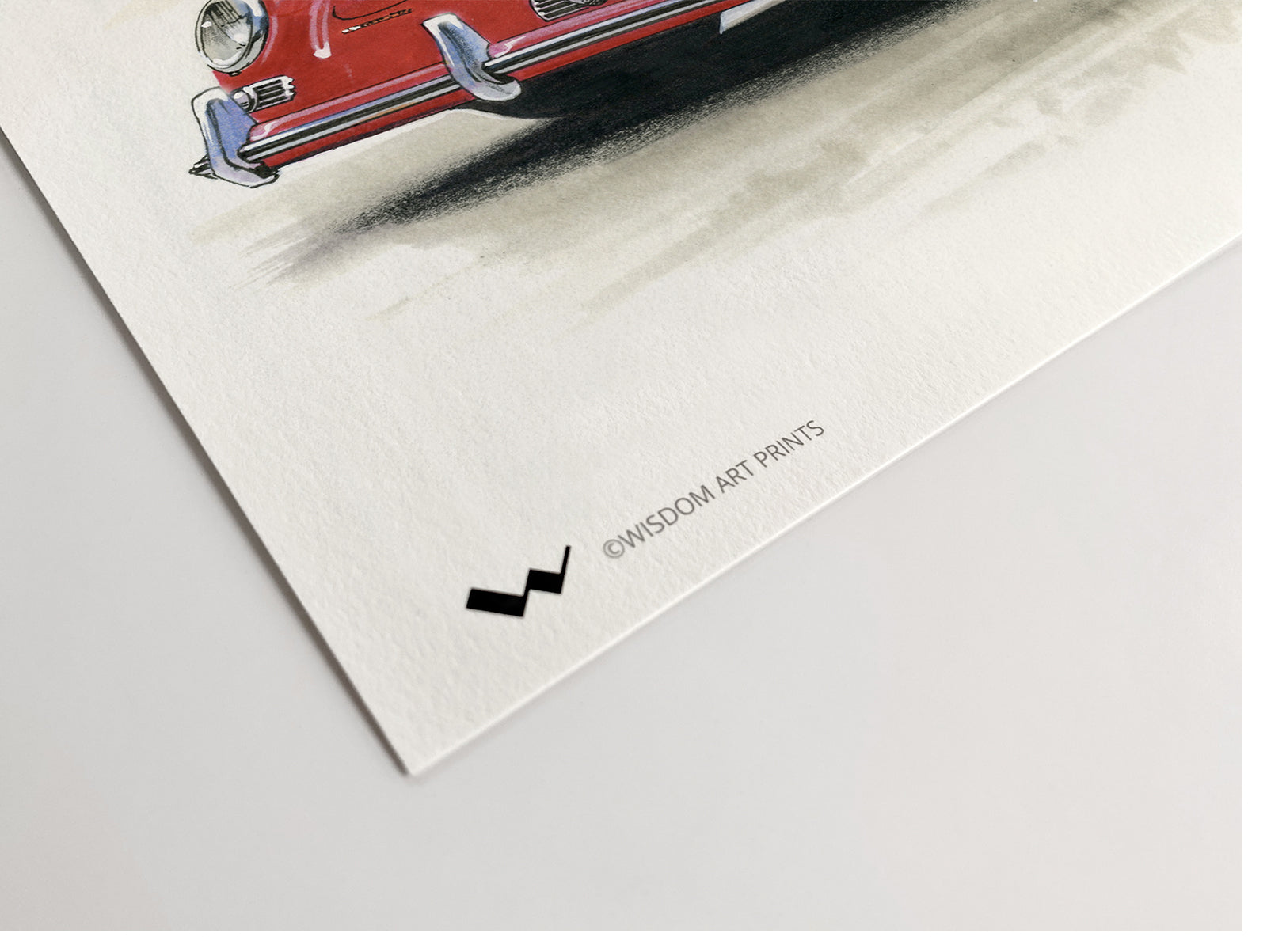 The Porsche 356 is a classic sports car, the first automobile produced by Porsche, running from 1948 to 1965. 1955 saw the introduction of the slightly-updated Porsche 356A - known as the T1 by enthusiasts - which is depicted in this illustration.