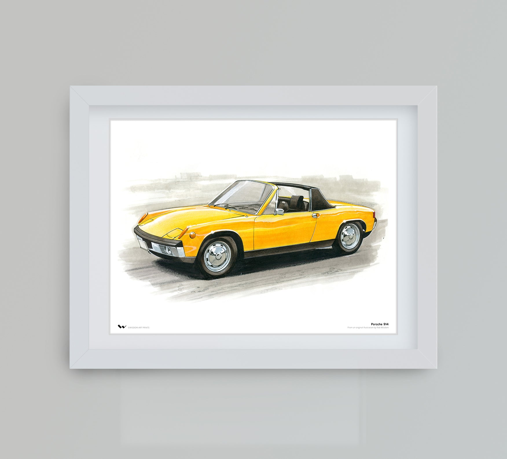The Porsche 914 - also known as the VW-Porsche 914 - is a classic sports car manufactured in collaboration by Volkswagen and Porsche from 1969 to 1976. The two German automobile manufacturers agreed to sell the car as a joint venture, due to concerns over marketing in the American market. This illustration depicts a Porsche 914 2-door targa.