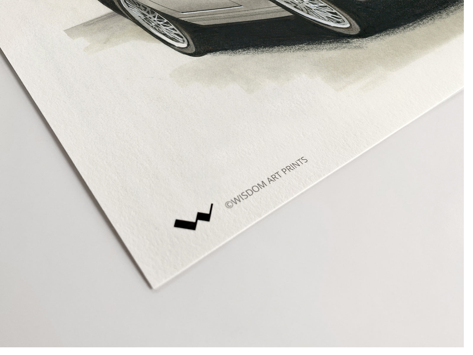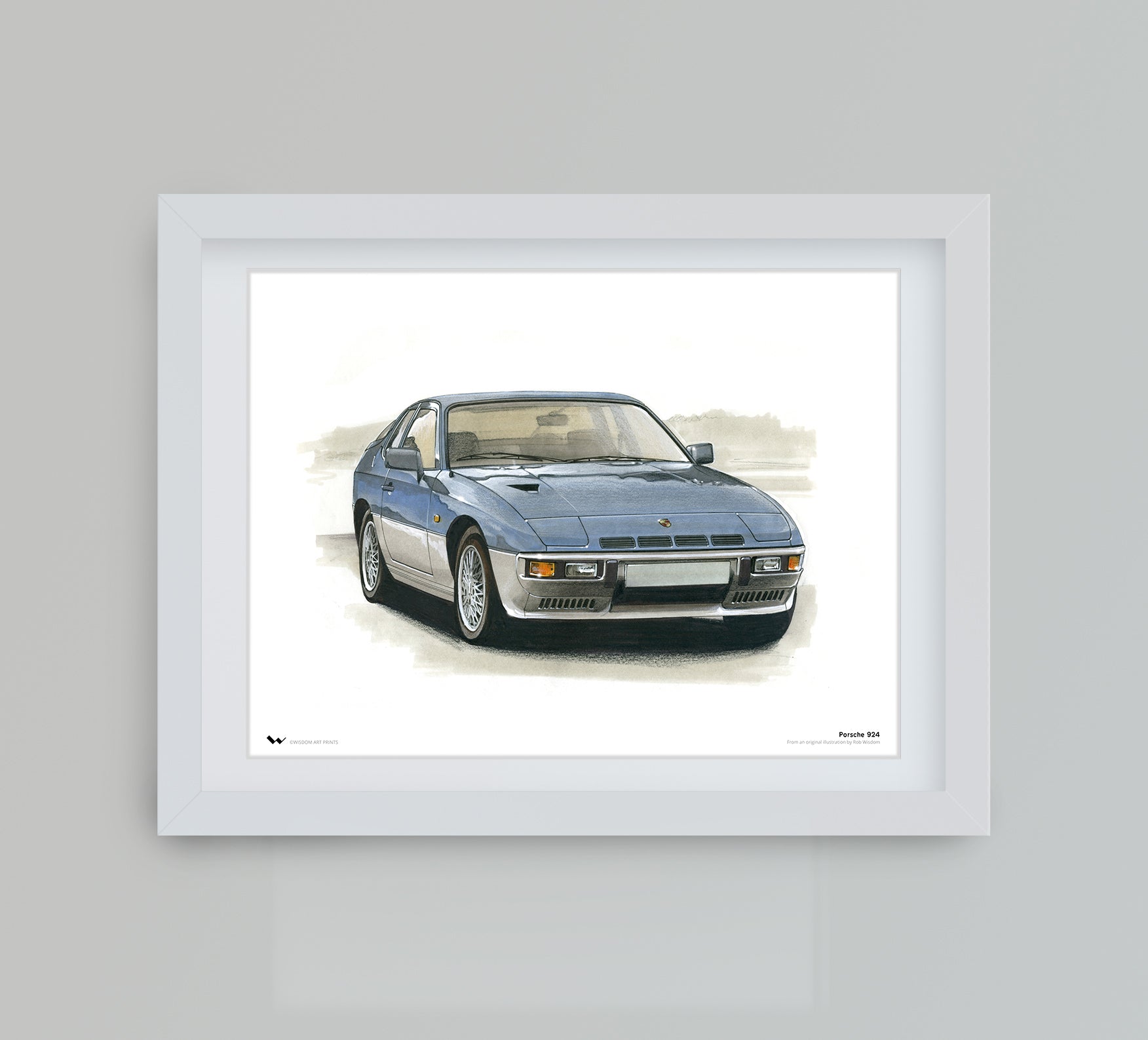 The Porsche 924 is a classic sports car, produced by Audi on behalf of Porsche from 1976 to 1988. Starting life as a joint venture between Volkswagen and Porsche, the 1973 oil crisis saw a change of plans, with Porsche buying the design outright and outsourcing it to fellow automobile manufacturer Audi. The 924, depicted in this illustration, was a popular sports car among enthusiasts due to its high performance.