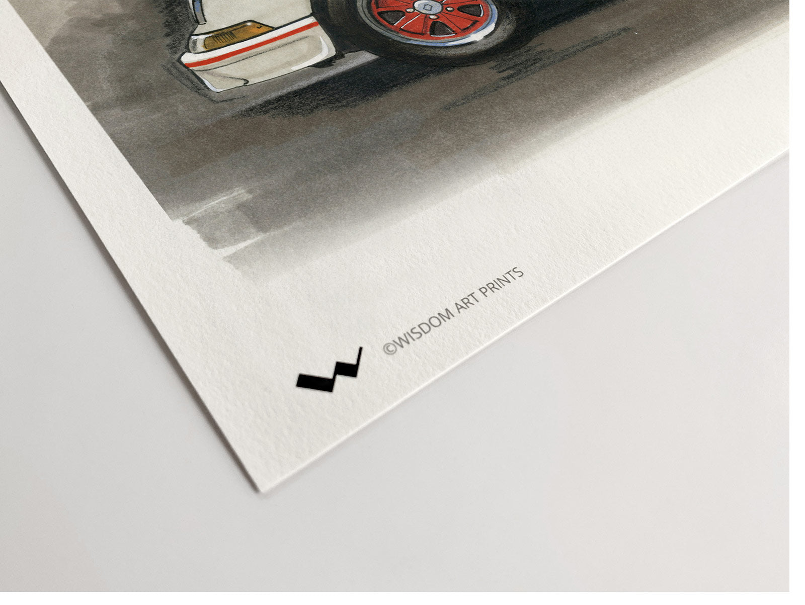 A variant of the iconic Porsche 911, the Porsche 911 Carrera RS2.7 - depicted in this illustration - is a classic sports car that heralded in an era of the Porsche 911 as one of the world's finest performance motorsport and racing cars. It is depicted here in racing livery.