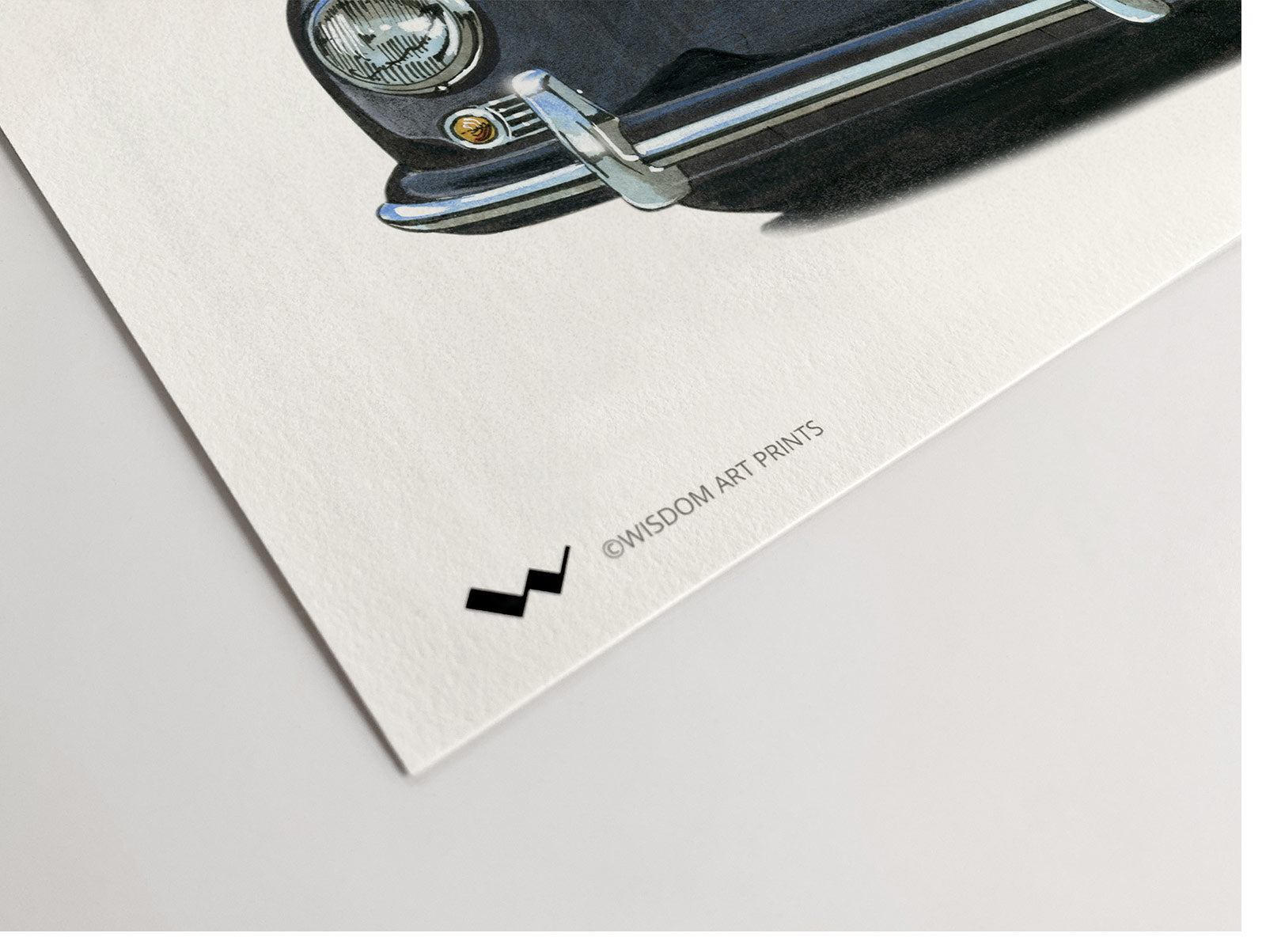 A variant of the iconic Porsche 911, the Porsche Speedster is a classic sports car that was produced by German automobile manufacturer Porsche. It is depicted in this illustration in a timeless black.