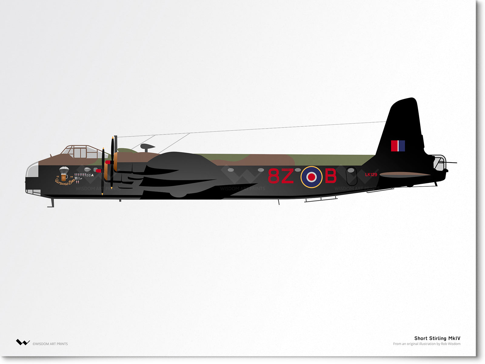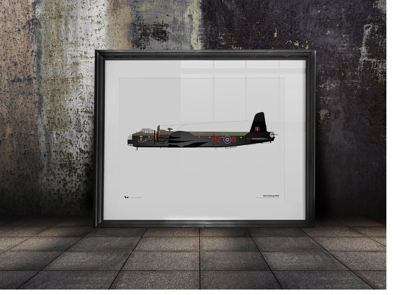 High quality art print of a Short Stirling Mk. IV, as operated by the Royal Air Force during the Second World War. First delivered in 1940, and first flown operationally in January 1941, the Short Stirling was the RAF's first four-engined monoplane bomber, and was used through to the end of the war.