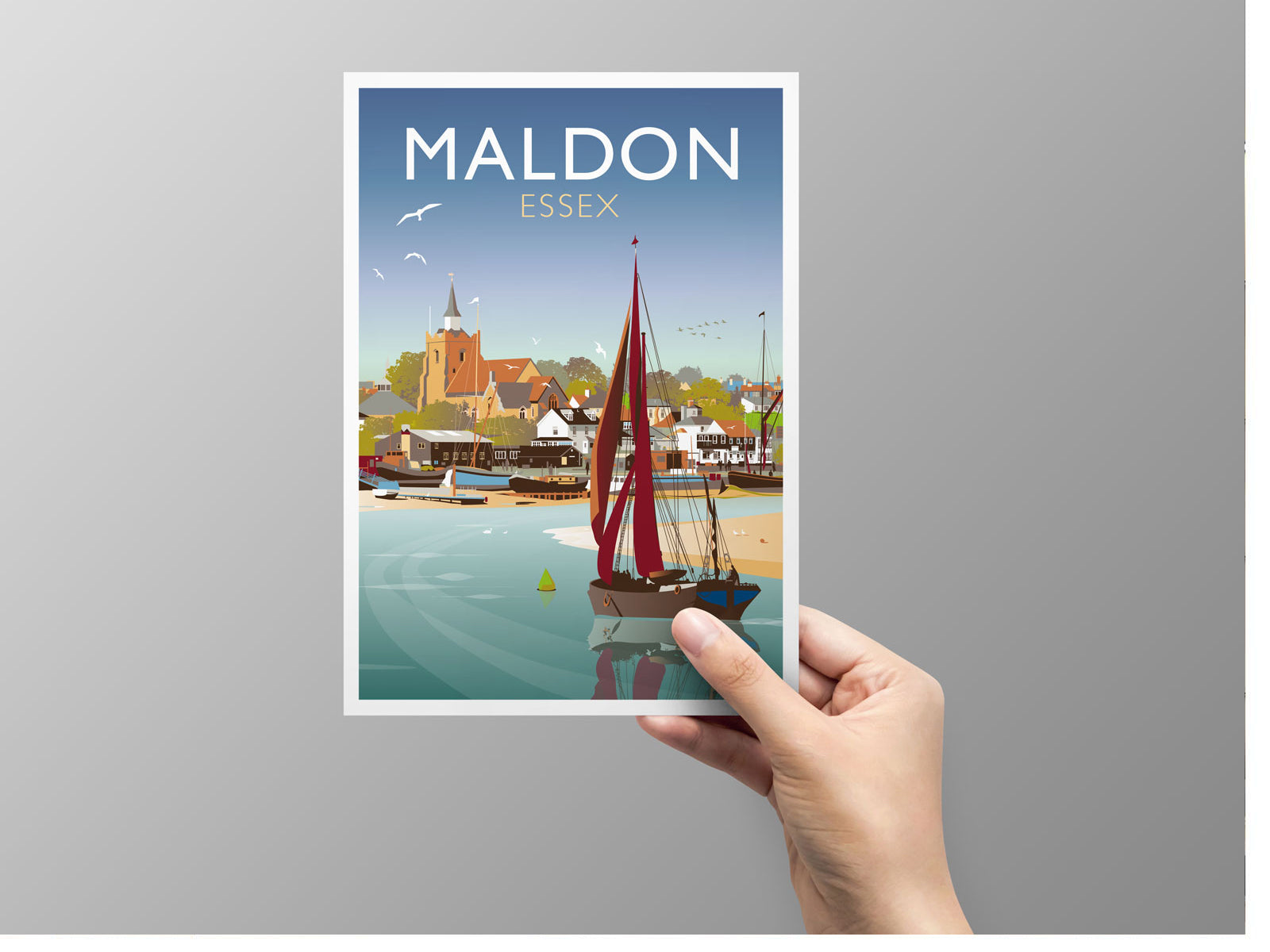 This Maldon illustration by Essex artist Rob Wisdom is a high quality greeting card. For our Giclée art print of Maldon, click here.
