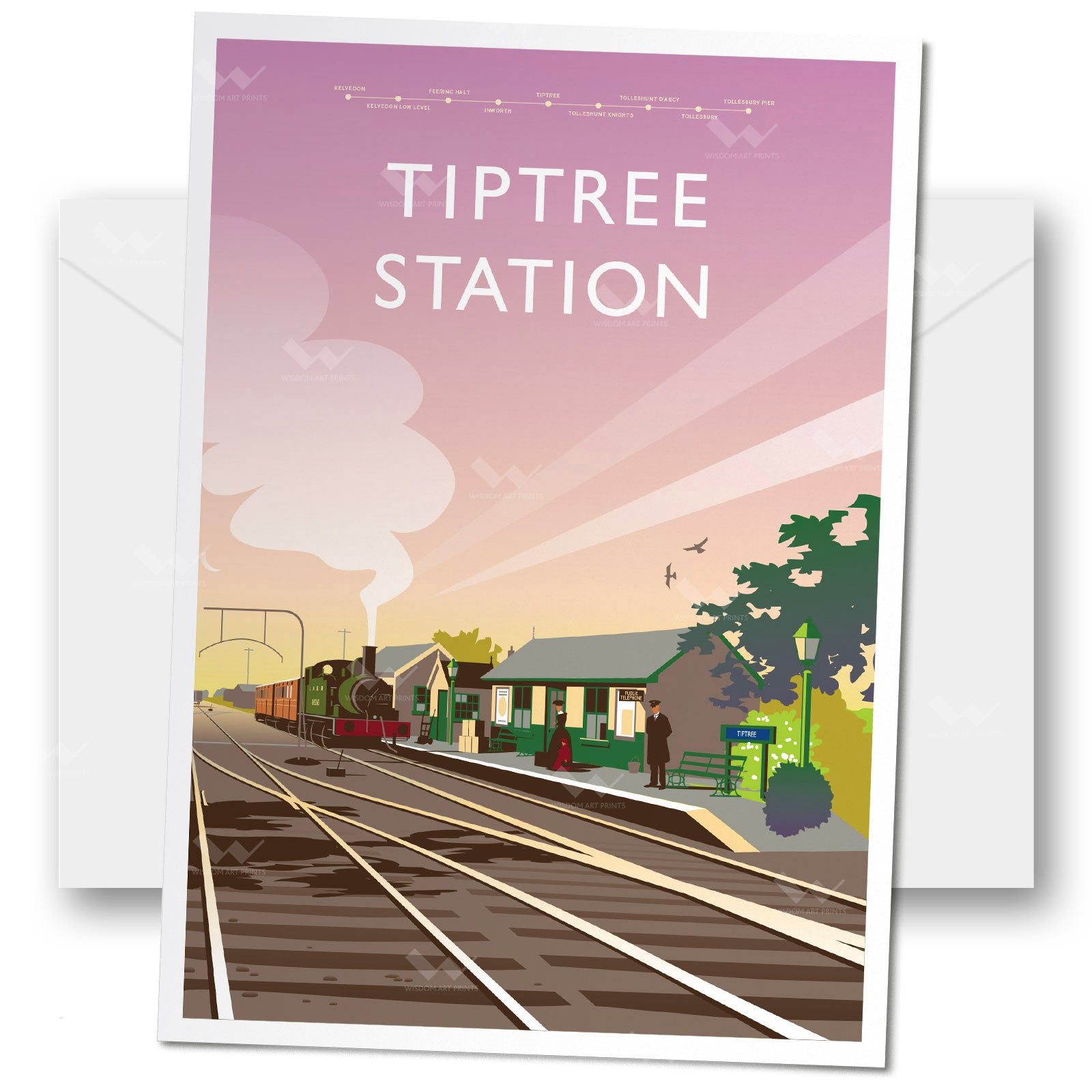 High-quality greeting card of the former Tiptree Station in Essex, which was on the Kelvedon and Tollesbury Light Railway, affectionately known by locals as the 'Crab and Winkle Line'. At its height, The Great Eastern Railway (GER) / London and North Eastern Railway (LNER) line ran between Kelvedon Low Level and Tollesbury Pier.