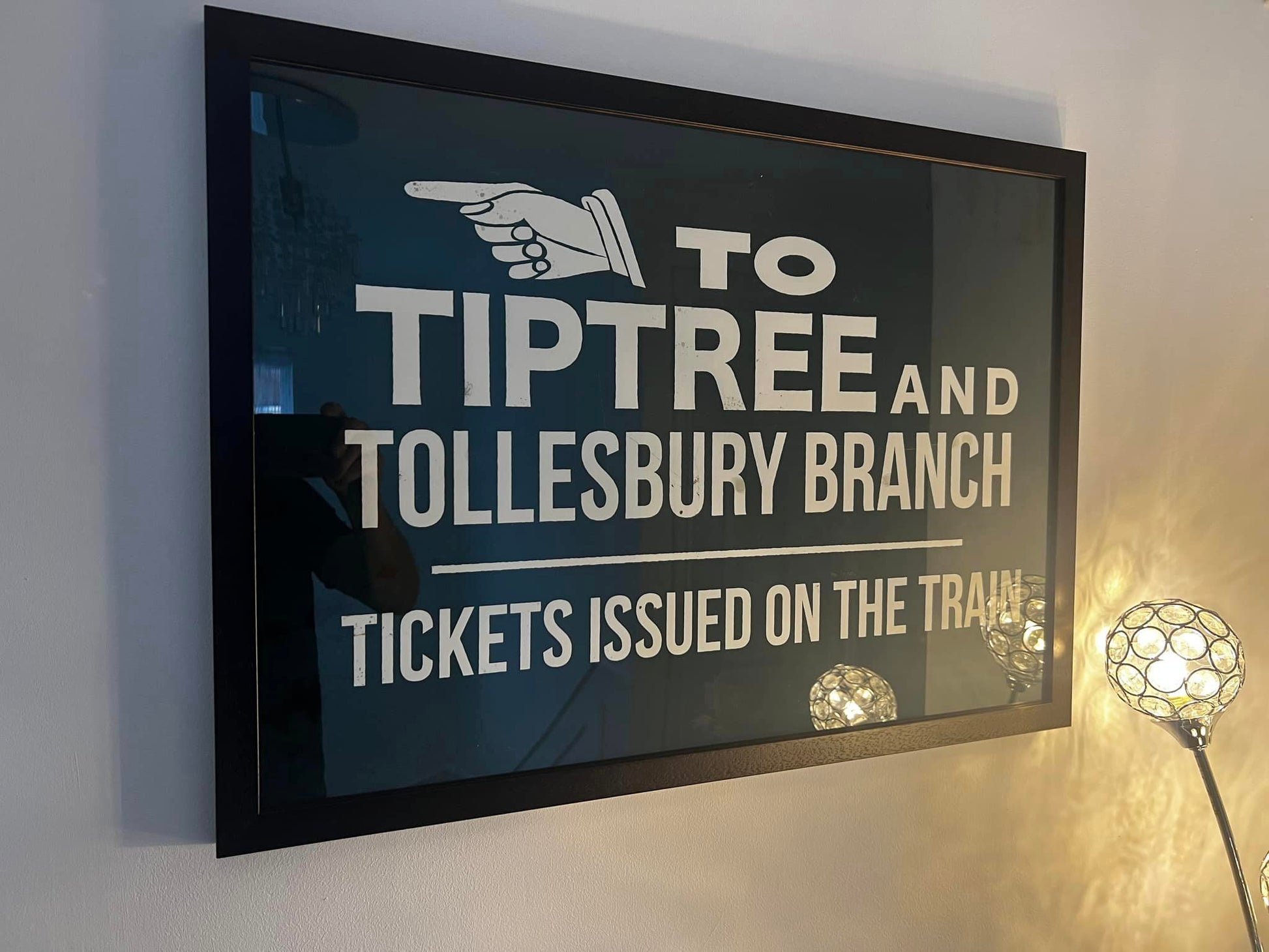 Historical recreation of the Tiptree and Tollesbury Branch Railway Sign, once located at Kelvedon Low Level Railway Station. The Kelvedon and Tollesbury Light Railway, as it was called, was affectionately known by locals as the 'Crab and Winkle Line'. At its height, The Great Eastern Railway (GER) / London and North Eastern Railway (LNER) line ran between Kelvedon Low Level and Tollesbury Pier.