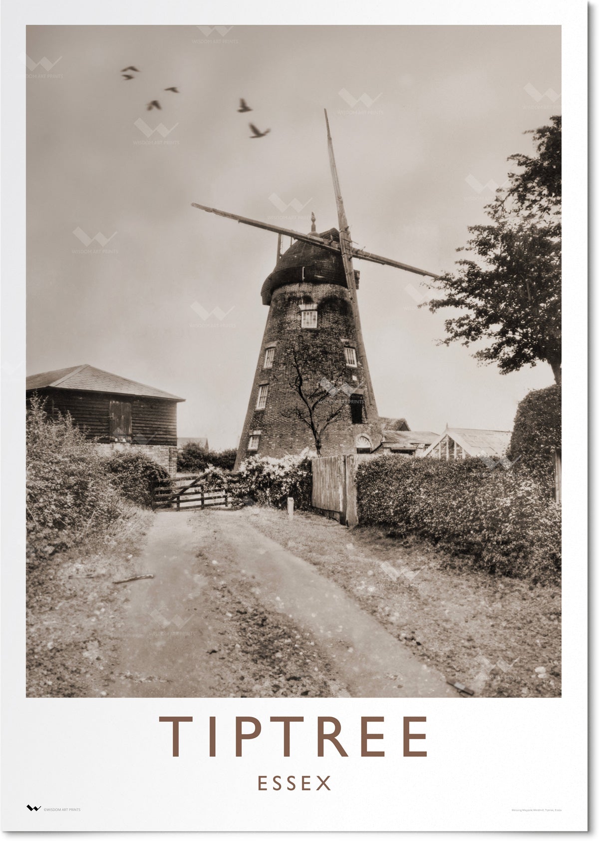 Tiptree Windmill (Messing Maypole Mill), restored and enhanced from an old sepia photograph. Printed using an eleven-colour Giclée printer on archival-quality art paper.