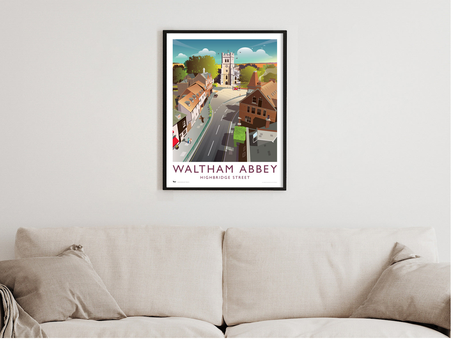 This Essex illustration by artist Tom Wisdom is a high quality Giclée travel poster. For our classic art print of Waltham Abbey, please click here.
